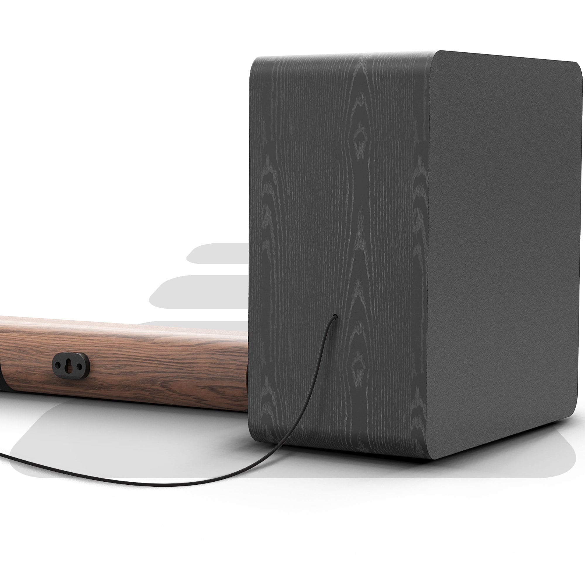Sleek, Functional Design: Available in elegant black or rich brown wood finishes, our soundbars enhance your space aesthetically and acoustically, whether wall-mounted or placed in front.