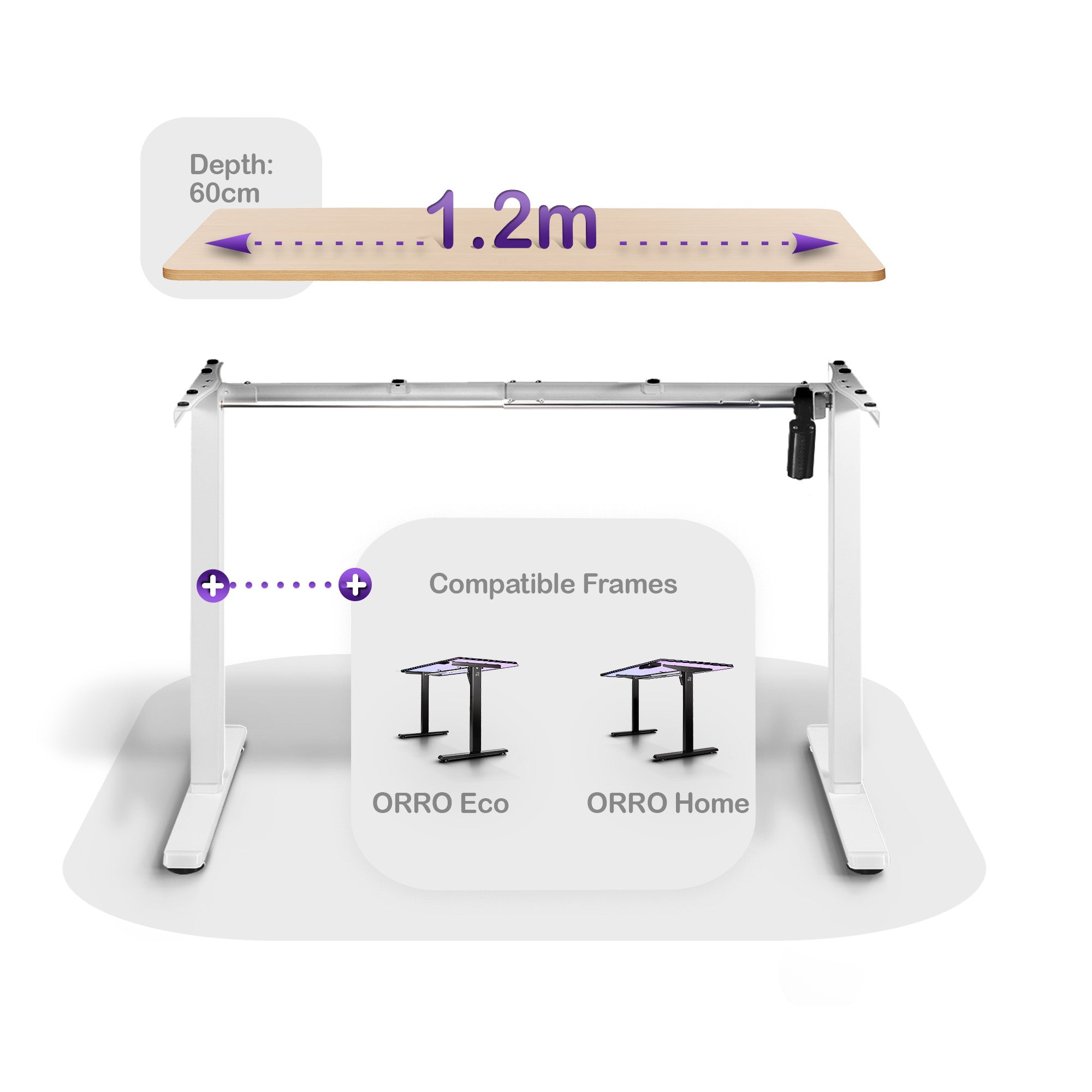 - 1.2m - Best for compact workspaces and smaller setups (Compatible with ORRO Eco and ORRO Home Standing Desk Frames)