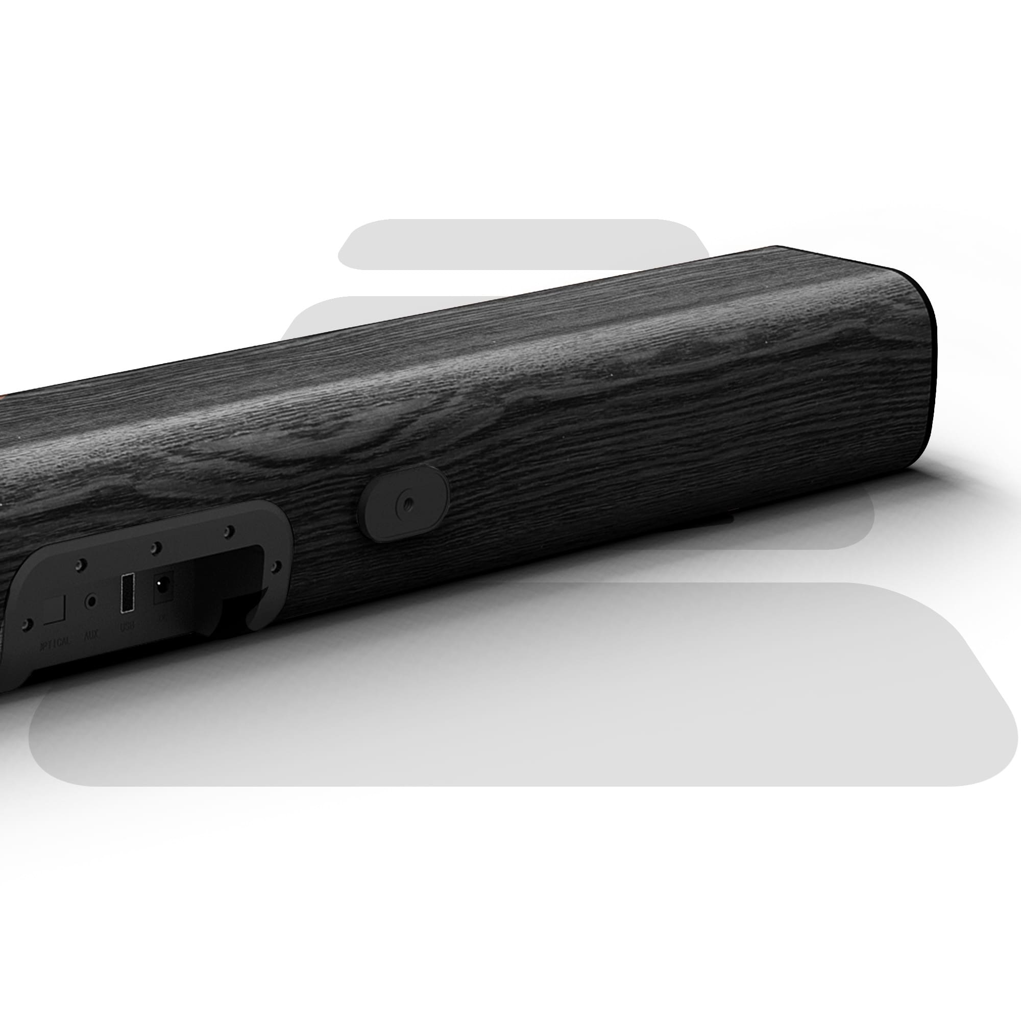 Sleek, Functional Design: Available in elegant black or rich brown wood finishes, our soundbars enhance your space aesthetically and acoustically, whether wall-mounted or placed in front.